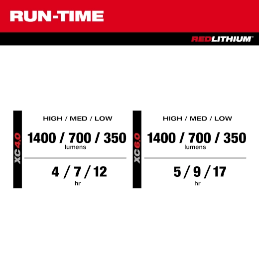 Over 4 Hours of Run-time on HIGH with an M12™ XC4.0 Battery