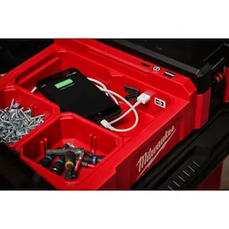 Our M12™ Flood Light + USB Charging w/ PACKOUT™ Compatibility provides maximum output in a compact and easy to transport design. Our compact and portable flood light delivers 1,400 lumens of TRUEVIEW™ high definition output and is top stack compatible with our PACKOUT™ Modular Storage System. The light head can rotate 300 degrees horizontally and 180 degrees vertically for complete light head control. With three different modes (high, medium, low) output and runtime can be adjusted depending on the job, with up to 12 hours of runtime on a M12™ XC 4.0 battery pack. Also included in this light is built-in storage with two storage containers to optimize space and organization. Our M12™ Flood Light + USB Charging w/ PACKOUT™ Compatibility allows you to charge devices with the 2.1AMP USB-A and USB-C ports whiles storing small items inside the storage compartment. Built to withstand the toughest conditions this light is IP54, drop-rated, and covered with a 5-year tool and limited LED warranty.
