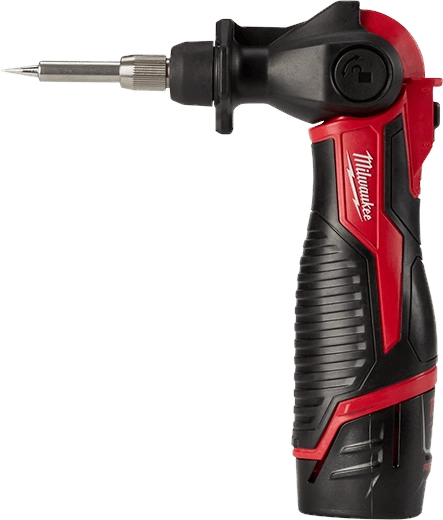 The M12™ Soldering Iron delivers fast application speeds by reaching operational temperature in under 18 seconds and maintaining an optimized temperature throughout the most demanding applications. The heat indicator utilizes REDLINK™ INTELLEGENCE to notify users when the tool is ready-to-use and safe-to-store, eliminating the guesswork. The 3-stop pivoting head provides unmatched access by allowing users the ability to adapt the tool for the application and solder in more confined spaces. The M12™ Soldering Iron powered by REDLITHIUM™ battery technology delivers up to 40 minutes of run-time on a M12™ Compact Battery Pack.