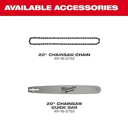The M18 FUEL™ 20” Dual Battery Chainsaw is optimized to be used with a 20” bar and chain but is compatible with other .325“ pitch, .050“ gauge bars and chains.