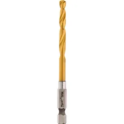 Our SHOCKWAVE™ RED HELIX™ Titanium Drill Bits are engineered for extreme durability and long life. The QUAD EDGE™ tip delivers a precision start and four cutting edges to create smaller chips for faster removal and less heat for longer bit life. The Variable Helix ™ design includes an aggressive 35° helical angle, which ends at 15°, these titanium drill bits with RED HELIX™ provide Rapid Chip Removal™ limiting heat buildup to Stay Sharper Longer™. The bits also feature an internal ENHANCED TAPERED WEB that greatly increases their strength, reducing premature breakage. Our titanium drill bits are ideal for various applications, including but not limited to wood, plastics, and metals. MILWAUKEE® Red Helix Titanium Drill Bits provide up to 5X life vs. black oxide drill bits.