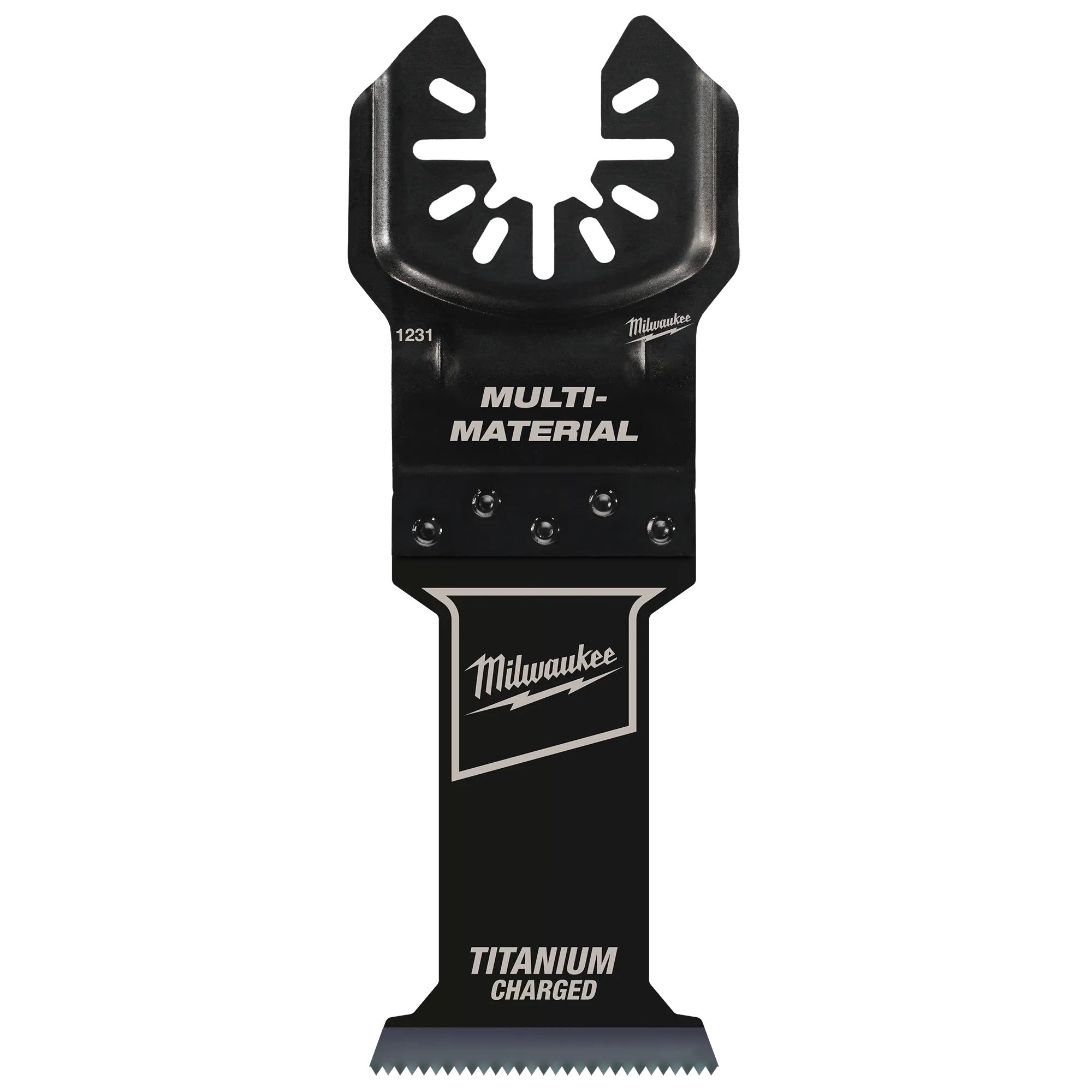 Our OPEN-LOK™ 1-3/8" TITANIUM CHARGED™ Bi-Metal Oscillating Multi-Tool Blades are made from premium high-speed steel. These bi-metal blades are ideal for cuts in wood, nails, PVC, and drywall. TITANIUM CHARGED™ Bi-Metal blades have an optimized titanium blend for maximum wear-resistance and up to 15x longer life vs. high carbon steel (HCS) blades. These blades feature a reinforced Universal Fit OPEN-LOK™ anchor for better strength & control and allow for quick blade changes across 100+ multi-tools. Not compatible with Starlock tools. MILWAUKEE® oscillating multi-tool blades are designed and made in the USA with global materials.
