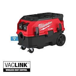 Our M18 FUEL™ 9 Gallon Dual Battery Dust Extractor w/ PACKOUT™ Compatibility and VACLINK™ Kit sets the standard for cordless dust extractors with strong performance and unmatched versatility. The Automatic Filter Cleaning mechanism provides the HIGHEST SUSTAINED AIR FLOW to maintain productivity during dust extraction applications. This mechanism paired with (2) HEPA Filters, delivers OSHA Table 1 Compliance. This dust extractor has VERSATILE POWER with corded and cordless capabilities for all-day productivity. With VACLINK™, a wireless dust control technology, compatible tools, and remotes connect to the dust extractor, allowing for activation from the dust-producing application for increased efficiency. The POWERSTATE™ Brushless Motor delivers 125 CFM on (2) M18™ Batteries and 175 CFM when plugged in. On (2) kitted M18™ REDLITHIUM™ FORGE™ HD12.0 Batteries, MAX POWER MODE delivers up to 41 minutes of continuous cleaning and 78 minutes on MAX RUN-TIME MODE. Optimized for concrete dust, drywall dust, and sawdust, the low flow indicator communicates if flow drops below optimal performance. Also capable of wet clean-up, water sensors indicate if the tank is full. The included 36mm x 10’ anti-static hose and attached hose clip connect to included power tool and table saw adapters that allow for efficient dust collection when paired with other tools. This extractor is PACKOUT™ compatible for convenient transportation and storage and offers ONE-KEY™ track and manage compatibility.