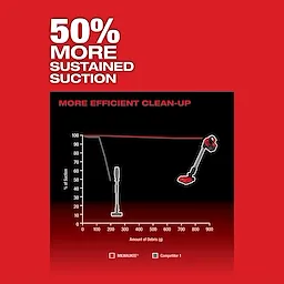 • 50% More Sustained Suction vs. Competition for more efficient clean-up