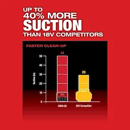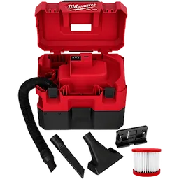 The MILWAUKEE® M12 FUEL™ 1.6 Gallon Wet/Dry Vacuum is the first cordless 12V wet/dry vacuum of its kind. It delivers users up to 40% more suction than 18V competitors, is the most compact, and is up to 2X quieter compared to other common wet/dry shop vacs. The POWERSTATE™ brushless motor delivers up to 45 CFM and 42"" of suction. It's compact footprint stores neatly in a van or cart with a stackable design and organized on-board storage conveniently keeps the attachments inside of the unit. It also comes with a wall mount hanging plate, giving users increased storage options. With 14 minutes of runtime on high and 26 minutes on the low setting, this compact vacuum is ideal for spot and service focused wet/dry quick clean up needs. This cordless wet/dry vac comes with a flexible hose, crevice tool, utility nozzle, wall mount, and a certified HEPA filter.