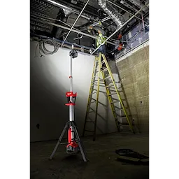 Our M18™ ROCKET™ Dual Power Tower Light provides 25% More Light and All Day Operation on the job site with 2500 lumens of TRUEVIEW™ High Definition Output. The LED light tower has Dual Power capability and can be powered by our M18™ batteries or by an extension cord. The tower light head can extend from 4 to 7 feet to light overhead work or minimize shadows when casting light downward. The LED light tower is capable of filling large areas with light and provides 2,500 lumens of TRUEVIEW™ High Definition Output in high mode, 1,100 in medium, and 700 in low. It can run for up to 13 hours with our M18™ REDLITHIUM™ XC 5.0 Battery Pack. MILWAUKEE® TRUEVIEW™ High Definition Output provides neutral white color and a high color rendering index with a reflector that produces an even beam pattern. The portable light tower has reinforced legs that are impact-resistant, and a low center of gravity provides a stable base. The LED light head is protected by an impact-resistant lens and bezel, nested in a protective shroud for secure transport and storage. The LEDs never need to be replaced and are backed by a limited lifetime warranty. The combination of these technologies offers professionals the highest quality LED lighting solutions, on or off the job site. MILWAUKEE® ROCKET™ Tower Lights are designed to deploy in seconds and built to adapt to any job site environment. The LED light towers supply both task and area lighting as well as provide light overhead to reduce shadows in the workspace.
