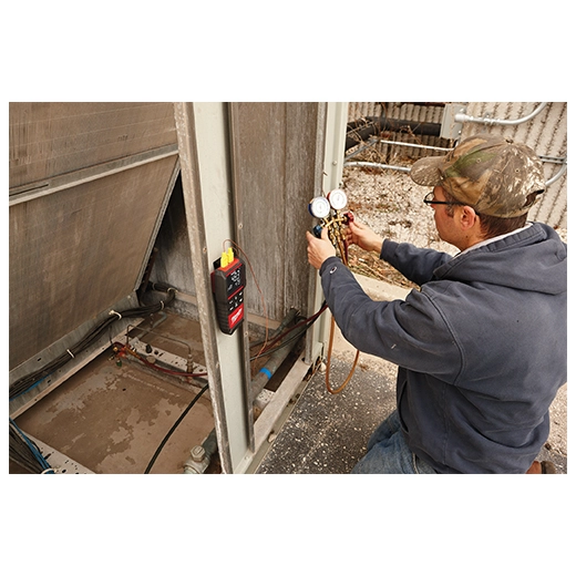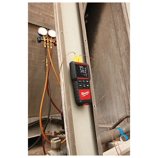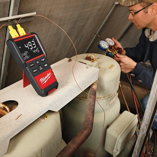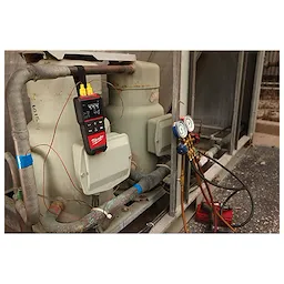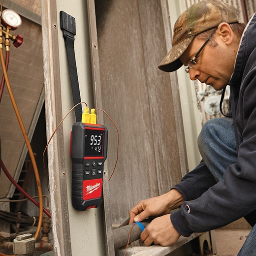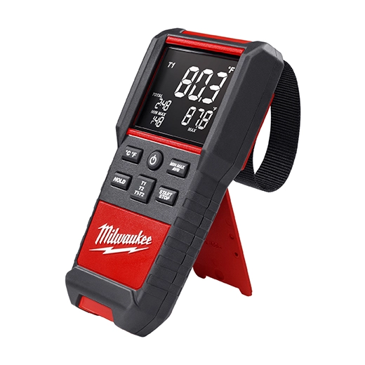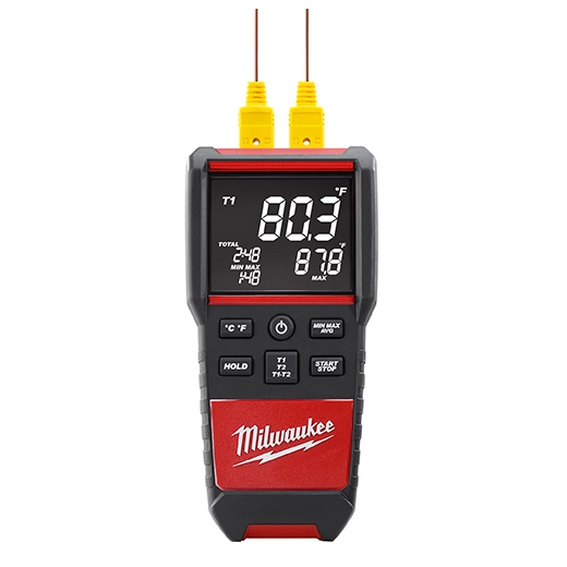 Heavy duty contact temperature meter for professional industrial, commercial and residential applications. The perfect tool for the professional, commercial or industrial HVAC and Service technicians; includes the features that are needed to get the job done in the field, on-site or in the plant. Milwaukee 2270-20 Contact Temp Meter measures temperatures from 2500 to -328°F (1372 to -200°C) to cover a wide range of applications; dual temperature measurement for faster measurement of heating and cooling systems; timer function for easy tracking of minimum, maximum and average temperatures over time; accurate to 0.1% of reading ±0.7°C for correct measurements every time; high contrast white on black display for easy reading in all conditions; magnet strap for hanging meter in all applications. Includes two (2) K-type thermocouples, three (3) AA batteries, and manual; covered by 5 year warranty.