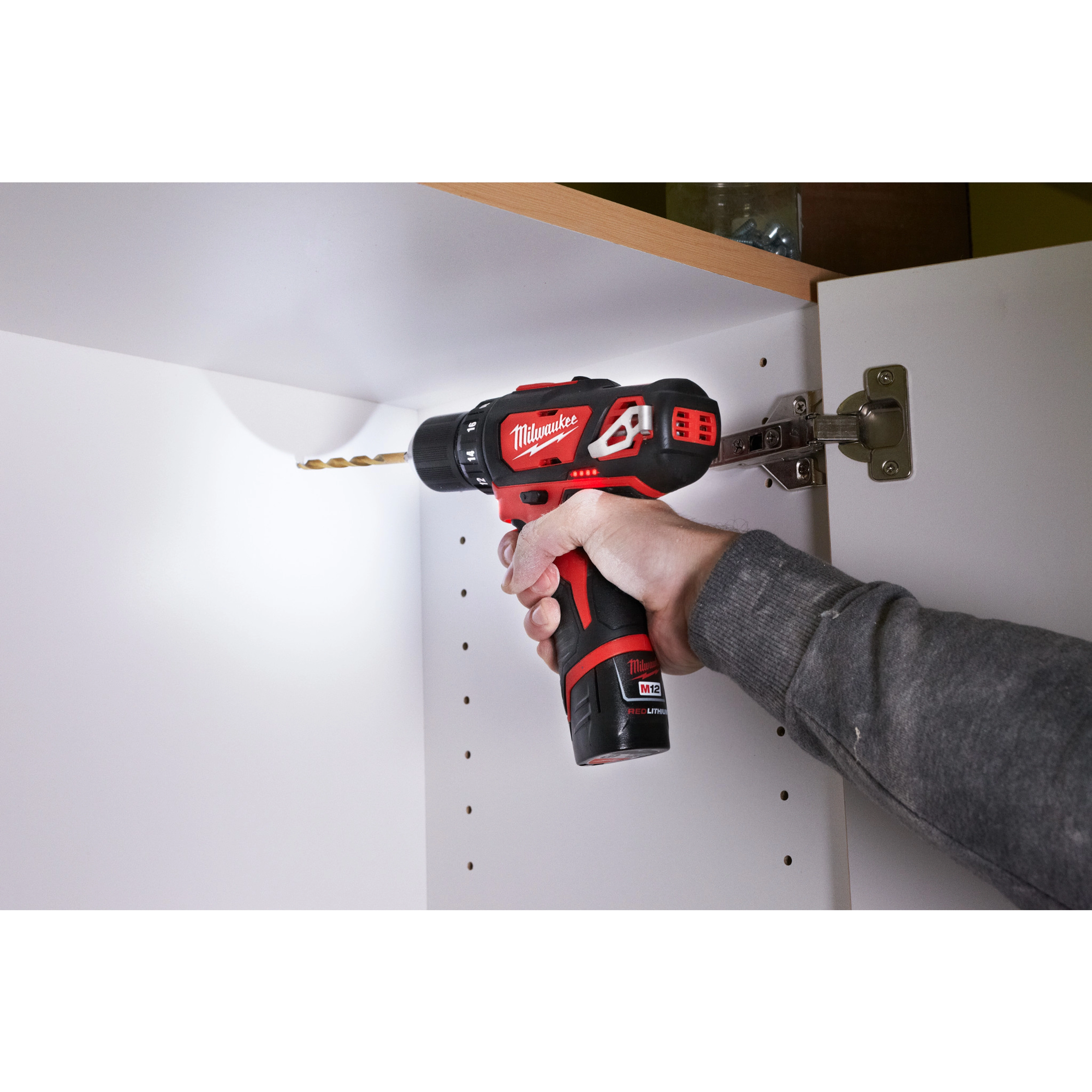 Our M12™ 3/8” Drill/Driver Kit drills and fastens up to 35% faster than its competitors and is the only tool in its class that has an all-metal locking chuck. The powerful compact cordless drill driver delivers 275 in-lbs of torque – up to 25% more torque than the competition – and 0-400/0-1,500 RPM. Its compact, lightweight and durable design offers you greater comfort and efficiency on the job site. The all-metal single-sleeve ratcheting chuck gives you superior bit grip so you won't have to stop for bit retightening or risk losing bits. The drill driver features an onboard LED light and fuel gauge helping you increase productivity and avoid interruptions. The REDLITHIUM™ Battery Pack gives you more work per charge and more work over pack life than the competitors. In addition to the compact drill driver, the kit includes two M12™ REDLITHIUM™ batteries, a charger and carrying case.