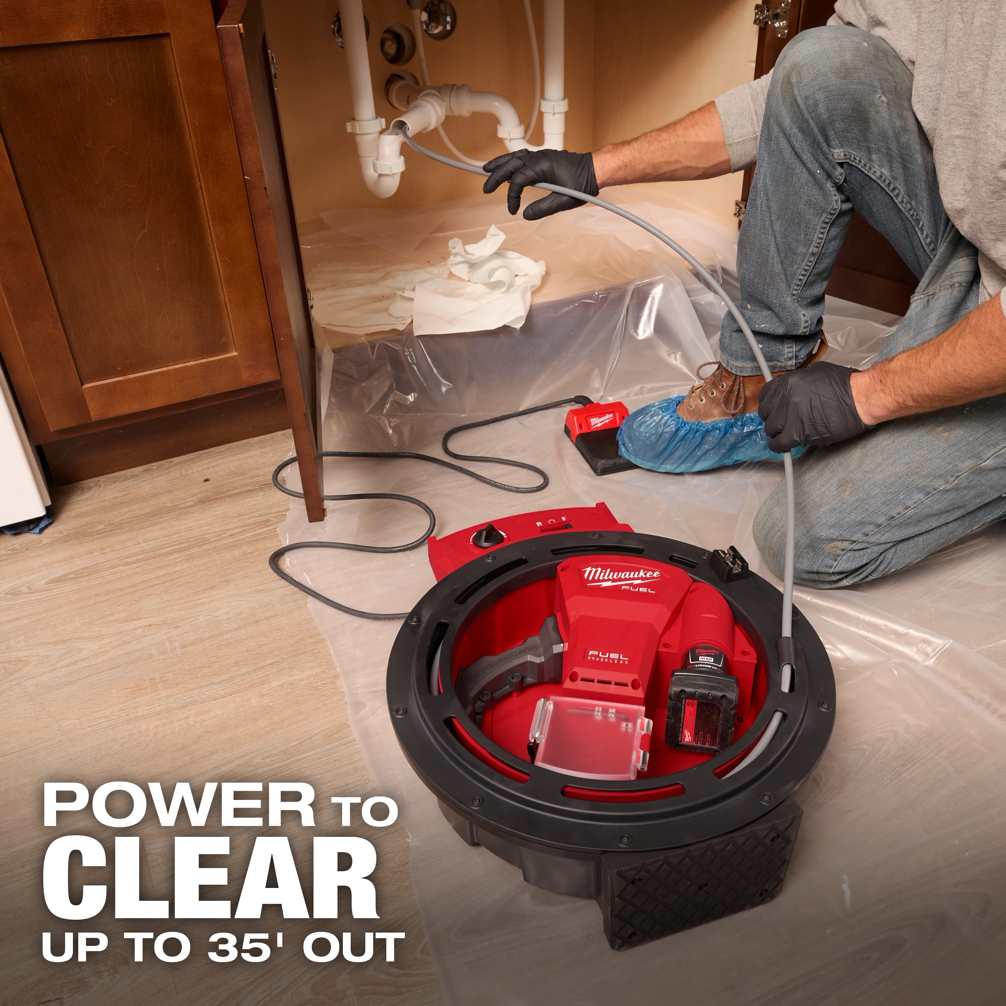 Our M12 FUEL™ High Speed Chain Snake for 1-1/4”-2” Pipes delivers the most productive, compact way to clear with instant setup. Our Chain Snake provides the power to clear up to 35’ out delivering full power at max distance. The Chain Snake provides the easiest, most controlled wall-to-wall clean, featuring an infinite variable speed, an electronic foot pedal, and a mechanical clutch. Eliminate the hassle of extension cords, finding electrical outlets, and unreliable drill connections with the Chain Snake that provides access to power anywhere. The included (1) M12™ REDLITHIUM™ XC6.0 batteries allow the tool to clear up to 70’ of build-up per charge. The M12 FUEL™ Chain Snake comes with 1-1/4” – 1-1/2” and 2” standard chain knockers to clear soft blockages and build-up. Additional accessories available: 1-1/4” – 1-1/2” Carbide (48-53-3035), 2” Carbide (48-3-3036), Penetrating Head (48-53-3037), and Replacement Cable (48-53-2519).