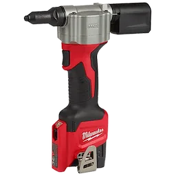 The M12™ Rivet Tool is the first cordless solution that delivers fast, easy riveting while maintaining performance, durability, and size. The 2550 can pull up to 250 3/16" stainless steel rivets or 450 1/8" steel rivets on one charge with a 1.5ah battery, and reduces muscle effort from a hand tool by 60%. No compressors or hoses during set up and operation makes this tool a great replacement to pneumatic products. 2X longer life over current cordless solutions delivers greater durability from common jobsite conditions and use. This is the most compact cordless rivet tool on the market, measuring only 6.5” in length allowing users more access in tight spaces. The M12 Rivet Tool is part of the M12™ battery platform, offering 150+ solutions on one battery system.