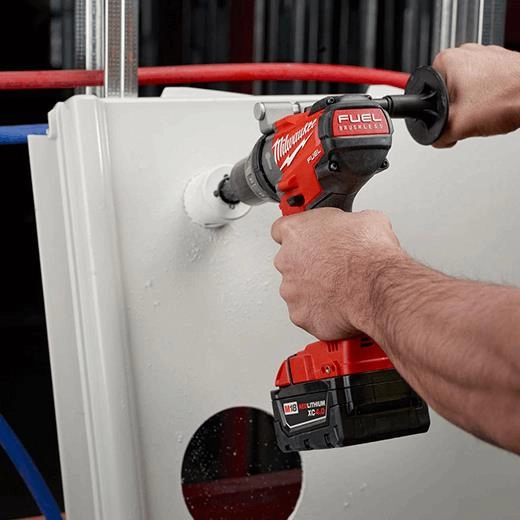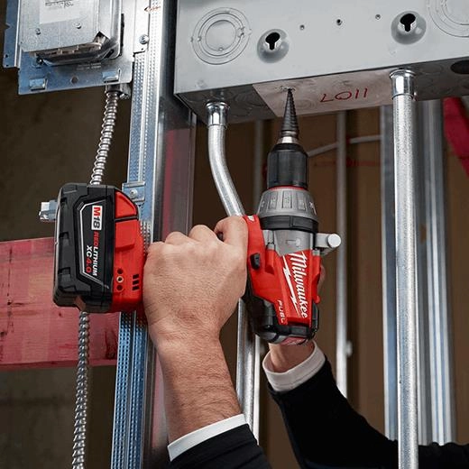 The M18 FUEL™ Hammer Drill/Driver is the most powerful 18-volt cordless hammer drill/driver in its class. This lightweight, versatile hammer drill/driver offers up to 10X longer motor life, 2X more runtime and 25% more power for maximum performance on the jobsite. The POWERSTATE™ Brushless Motor outperforms all leading competitors with constant power output, yet runs cooler with no wearable components. The REDLITHIUM™ Extended Capacity Battery Pack delivers more work per charge and more work over pack life than the competitors. The onboard fuel gauge helps you monitor the charge more accurately, so there’s less downtime on the job. REDLINK PLUS™ intelligence ensures maximum performance and protection from overload, overheating and over-discharge.  The M18 FUEL™ Hammer Drill/Driver’s all-metal ratcheting locking chuck provides maximum grip, bit retention and durability. The hammer drill/driver features 31,450 BPM for fast hammer drilling through masonry. A new contoured soft grip gives you ultimate comfort during prolonged use. The kit includes the new multi-voltage charger, so you can charge all M12 and M18 lithium-ion batteries with one charger.