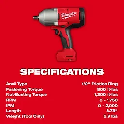 • The 1/2" friction ring anvil allows quick one handed socket changes