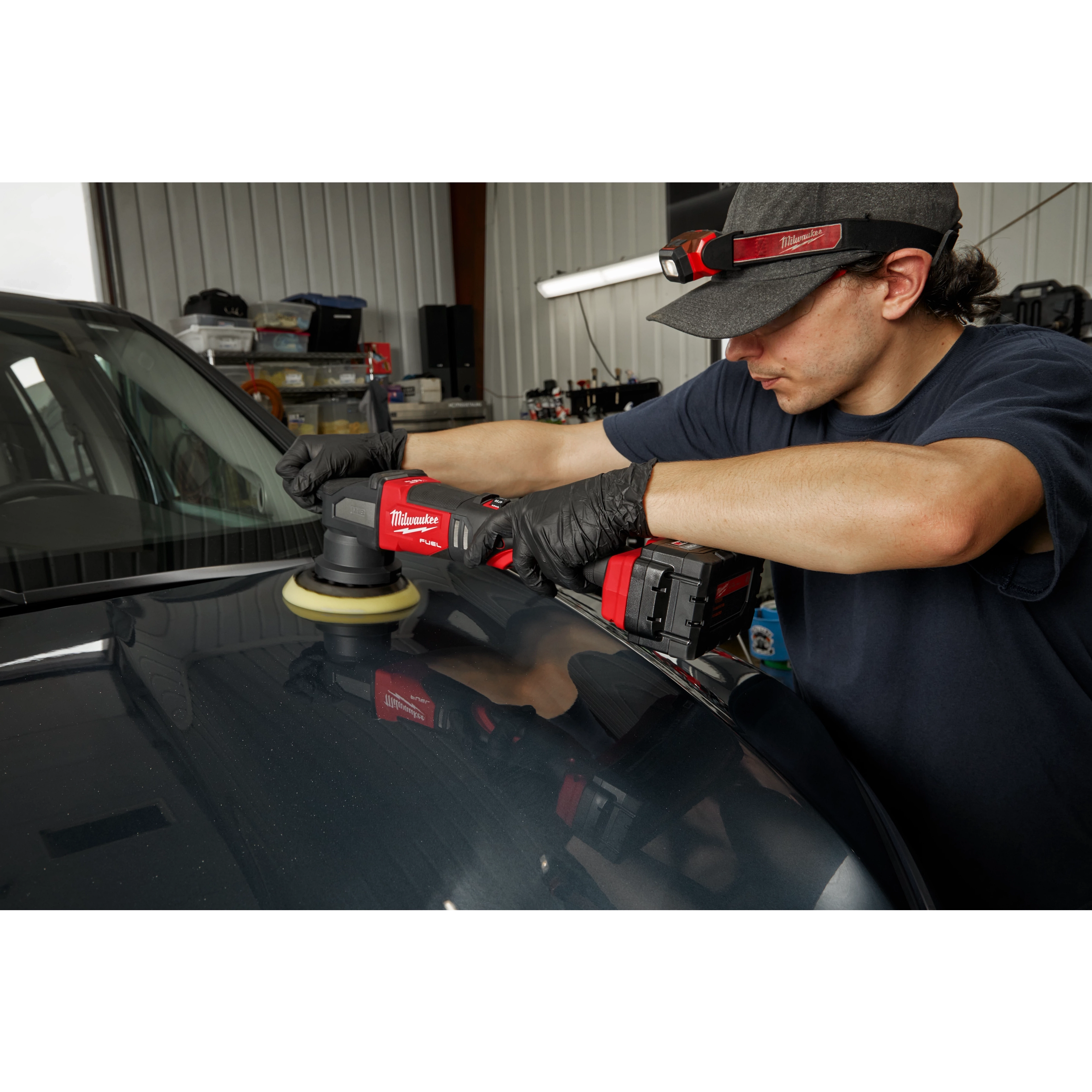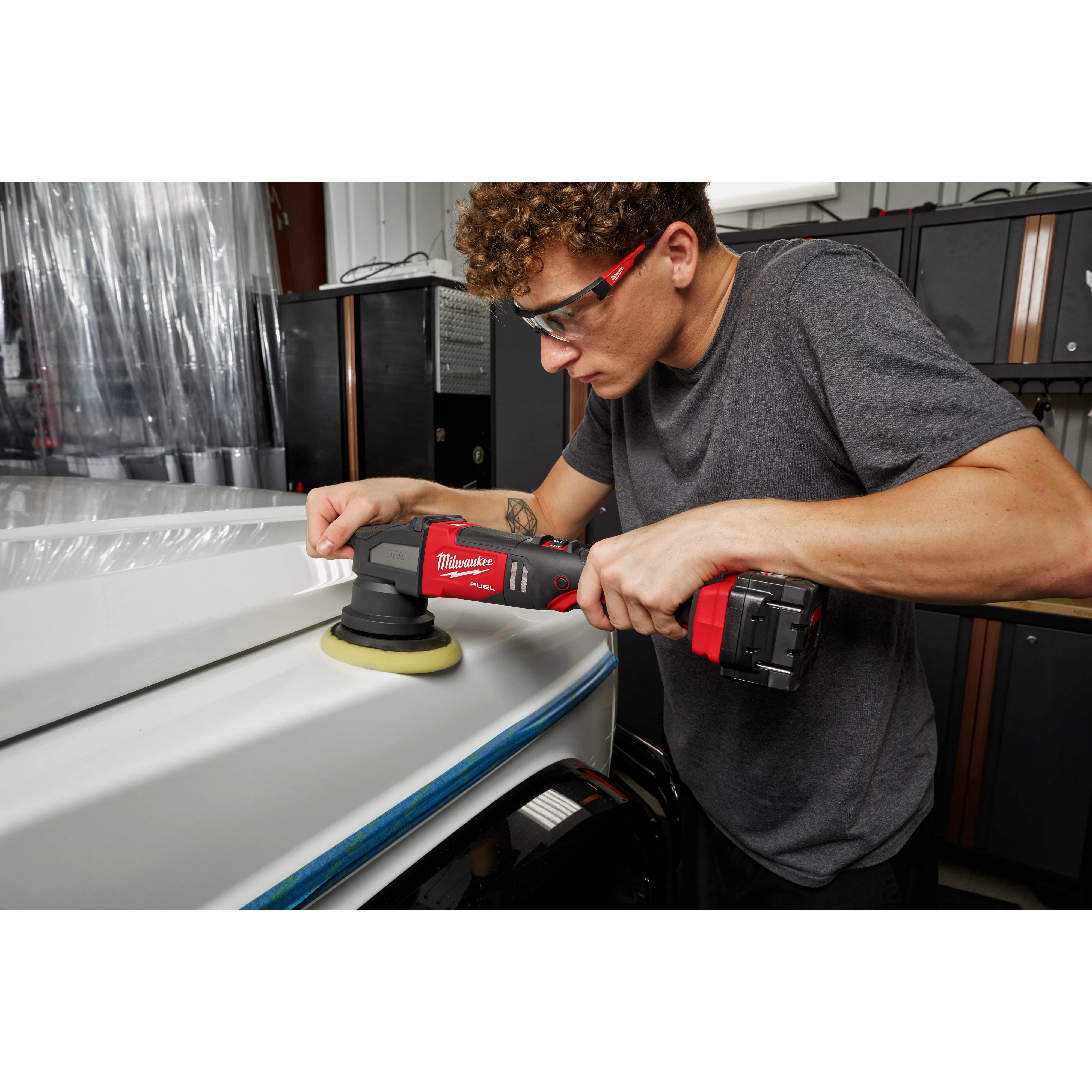 Our M18™ FUEL™ 15mm Random Orbital Polisher is the most powerful cordless polisher on the market. By harnessing the power, performance, and run-time of M18™ FUEL™ technology, this tool delivers corded performance while providing you with the freedom to work anywhere. This battery-powered polisher gives you total control with its variable speed trigger, 8-position speed dial with RPM settings ranging from 2,650-5,100 RPM, trigger lock-on button, and maintains speed under load better than any cordless competitor. The M18™ FUEL™ 15mm Random Orbital Polisher frees you from the fear and frustration you may face in applications from surface damage or cord management. With over 2” of battery clearance and proper use, you can rest assured that their work surface is protected from dents and scratches. The MILWAUKEE® M18™ FUEL™ 15mm Random Orbital Polisher provides the run-time necessary to keep professionals productive during polishing and heavy correction applications when paired with M18™ REDLITHIUM™ HIGH OUTPUT™ XC 6.0Ah batteries. This polishing tool is easy to use and comfortable for extended periods with an optimized center of balance and ergonomic design.