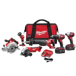 The 2696-26 M18™ Cordless 6-Tool Combo Kit includes the M18™ 1/2" Hammer Drill / Driver (2602-20), M18™ 1/4" Hex Impact Driver (2650-20), M18™; Sawzall® Recip Saw (2620-20), M18™ 6 ½" Circular Saw (2630-20), M18™ 4-1/2" Cut-off / Grinder (2680-20) and M18™ Work Light (49-24-0171). The M18™ Cordless LITHIUM-ION System's patented technologies and electronics, innovative motor design, and superior ergonomics provide the most efficient blend of power, weight and performance in the industry. Powered by REDLITHIUM™ the M18™ cordless system delivers more torque, more power, and longer run-time than the competition.
