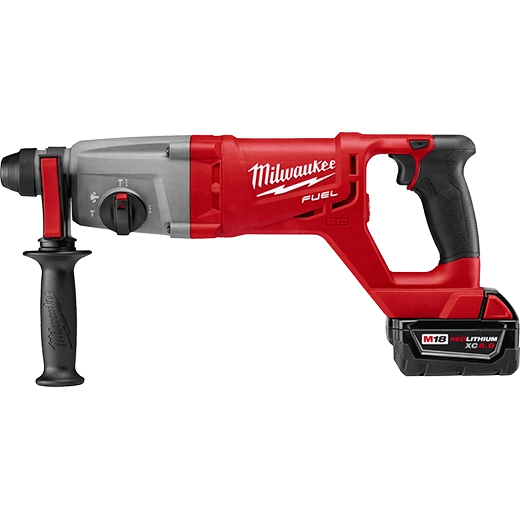 Powered by FUEL™ technology, the M18 FUEL™ 1" SDS Plus D-Handle Rotary Hammer delivers faster than corded speed, corded durability and all day work on one charge. The Milwaukee® POWERSTATE™ Brushless Motor Provides 1.7 ft-lbs. of impact energy, 0-1,400 RPM and 0-4,900 BPM. The Milwaukee REDLITHIUM™ XC 5.0 Battery Packs (not included) provide all day work on one charge, 20% more power and 2X more recharges than standard Lithium-Ion batteries. REDLINK™ PLUS Intelligence integrates full-circle communication between tool, battery and charger to protect from overloading, overheating and over-discharging.
