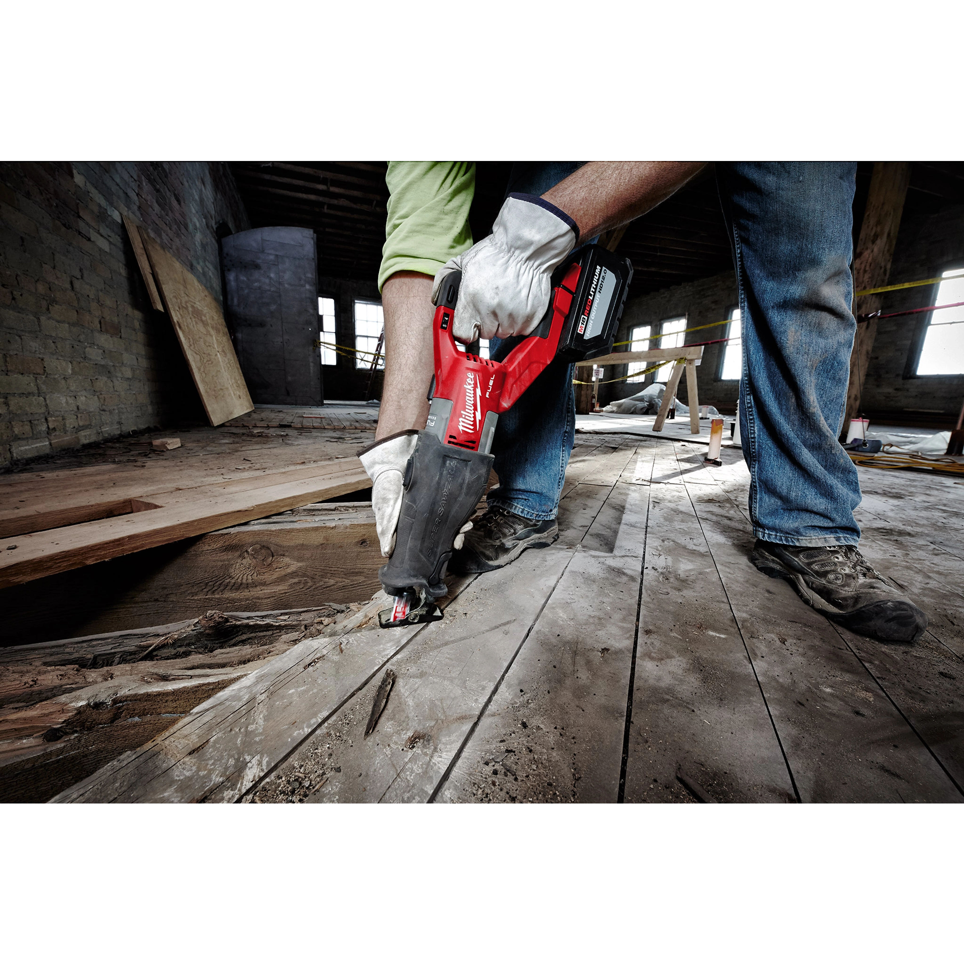 The SUPER SAWZALL® Reciprocating Saw generates 15A corded power, faster cuts than 15A reciprocating saws and delivers Up To 150 Cuts in 2x12 SPF per charge. Designed to perform in the toughest applications, the M18™ FUEL SUPER SAWZALL® combines Milwaukee's legendary performance and durability with the portability of the M18™ platform. The POWERSTATE™ Brushless Motor Provides 3,000 SPM and higher speeds under load for corded cutting performance. REDLINK PLUS™ intelligence ensures maximum performance and protection from overload, overheating and over discharge. The M18™ REDLITHIUM™ HIGH OUTPUT™ HD12.0 battery delivers unmatched run-time in all applications. The 1-1/4" stroke length removes more material with each stroke and On/Off orbital action provides aggressive cuts in wood and smooth cuts in metal. Variable speed trigger and 5-speed dial provide maximum speed control for any application. The QUIK-LOK® blade clamp allows for tool less blade changes and a rafter hook provides a convenient way to store the saw between cuts.