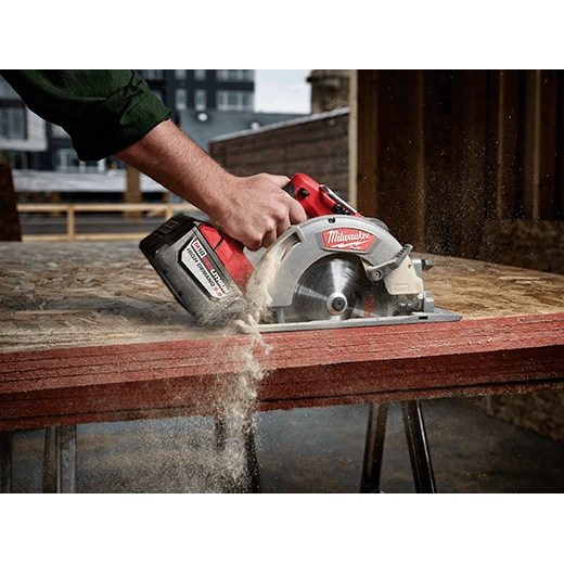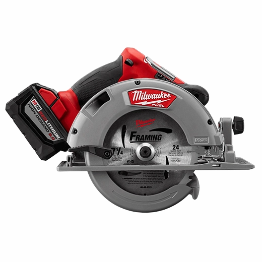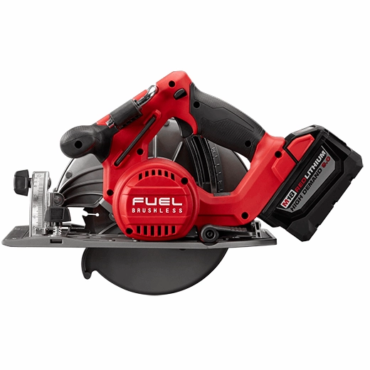 The M18 FUEL™ 7-1/4” Circular Saw Cuts Faster and Weighs up to 40% less than corded saws, while delivering up to 537 cuts in 2x4 on one charge. Utilizing a POWERSTATE™ brushless motor the M18 FUEL™ 7-1/4” Circular Saw cuts faster than corded counterparts. Weighing in at only 9 lbs with battery pack, the saw is up to 40% lighter than competitive corded circular saws, without sacrificing cut depth or performance. REDLINK PLUS™ Intelligence has the most advanced system of cordless power tool electronics, providing optimized performance and overload protection by using total system communication between tool, battery and charger. The M18™ REDLITHIUM™ HIGH DEMAND™ 9.0 Battery Pack delivers up to 5X more run-time, 35% more power, and runs 60% cooler than standard 18V lithium-ion batteries. It maintains full power and runs substantially cooler through heavy applications, allowing users to push their cordless tools harder and longer than ever before. The M18™ REDLITHIUM™ HIGH DEMAND™ 9.0 battery is fully compatible with 100+ M18™ tools. The M18 FUEL 7-1/4” Circular Saw features an LED light to increase accuracy in low light situations and a rafter hook for easy storage in-between cuts. It also features a magnesium shoe as well as upper and lower guards to reduce tool weight while not sacrificing durability.