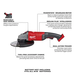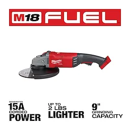POWERSTATE brushless motor: purposely built for the M18 FUEL 7 in./9 in. L angle grinder to generate the power and performance of a 15 Amp corded large angle grinder