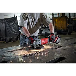 The M18 FUEL™ 7" / 9" Large Angle Grinder is the world's first 18v LAG. It generates 15A corded power is up to 2 lbs lighter, and has 9" grinding capacity. Providing high performance, advanced ergonomics & legendary durability, this grinder is designed to complete the toughest grinding, surface preparation, and cutting applications with any 7" - 9" accessory. The POWERSTATE™ Brushless Motor provides 6,600 RPM and higher speeds under load for corded grinding/cutting performance. REDLINK PLUS™ intelligence ensures maximum performance and protection from overload, overheating and over discharge. The M18™ REDLITHIUM™ HIGH OUTPUT™ HD12.0 battery delivers unmatched run-time in all applications. Tool-free accessory changes using the FIXTEC™ nut and guard adjustments mean less downtime during work.