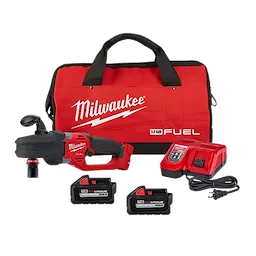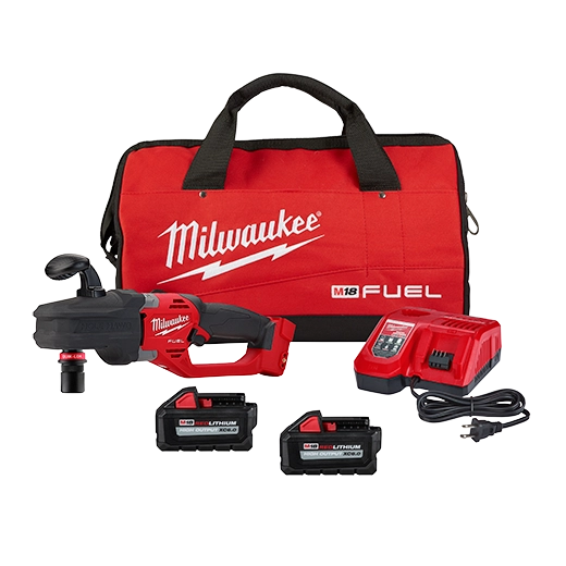 Our M18 FUEL™ HOLE HAWG® Right Angle Drill w/ QUIK-LOK™ Kit delivers the next generation of right-angle drill performance providing electricians with the fastest rough-ins, lightest right-angle drill, and the run time to complete up to 220 7/8” holes per charge. We’ve redesigned our HOLE HAWG® Right Angle Drill with an upgraded POWERSTATE™ Brushless Motor and enhanced REDLINK PLUS™ Intelligence electronics. This next generation of the M18 FUEL™ HOLE HAWG® delivers you increased power and speed to complete the fastest rough-ins in the industry, without compromising on the lightweight or compact size that make this tool the ultimate right angle drill for electricians. Our QUIK-LOK™ Chuck attachment system allows for quick keyless, one-handed bit changes. The QUIK-LOK™ Chuck is compatible with most auger bits, self-feed bits, and hole saws with flat or groove 7/16” hex shanks. When you pair the new M18 FUEL™ HOLE HAWG® with our M18™ REDLITHIUM™ HIGH OUTPUT™ 6.0AH Batteries it can drill up to 220 7/8"" holes on a single charge to and increase productivity and eliminate downtime. In addition to the right angle drill, this kit includes two M18™ Redlithium 6.0 HO Batteries, one M18™/M12™ Rapid Charger, and Contractor Bag.