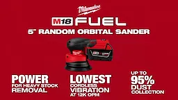 Designed for the professional carpenter, remodeler, and general contractor, our M18 FUEL™ 5” Random Orbital Sander generates the Power for Heavy Stock Removal to sand the toughest materials on site while delivering the Lowest Cordless Vibration at 12K OPM and Up To 95% Dust Collection. The ergonomic form factor, compact size, and low vibration offer increased user comfort during operation. The POWERSTATE™ Brushless Motor and REDLINK PLUS™ intelligence deliver corded power for faster removal at 12,000 OPM for enhanced productivity on the jobsite. The sander features a random orbital sanding motion with a 3/32” orbit diameter to deliver a clean, consistent stain-grade surface finish, combined with a 5-mode speed control from 12K - 6K for increased control across a wide variety of materials. Equipped with VACLINK™ Bluetooth technology, the sander delivers up to 95% efficiency and instant dust control when paired with our M18 FUEL™ PACKOUT™ 9 Gallon Dual-Battery Dust Extractor. Our battery-powered 5” Random Orbital Sander is backed by our industry-leading 5-year limited power tool warranty.
