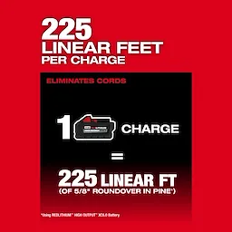 Designed for the professional carpenter and remodeler, the MILWAUKEE® M18™ Fuel™ ½” Router delivers best-in-class cordless performance with 2.25 peak horsepower, the best control and comfort in application, and over 225 linear feet of runtime per charge. The POWERSTATE™ brushless motor delivers less bog down under load for clean, precise cuts and increased productivity. REDLINK PLUS™ intelligence ensures maximum performance and protection from overload, overheating, and over-discharge. The ergonomic BODYGRIP® and overmold pommels provide the best control and comfort in application to enhance precision and reduce fatigue. The M18™ REDLITHIUM™ HIGH OUTPUT™ XC6.0 battery pack (not included) provides up to 225 linear feet per charge of 5/8” roundovers in pine and the power to tackle the toughest applications found on the jobsite. The variable speed dial has an adjustment range from 25k to 12k RPM to optimize cuts across a wide range of bits and materials. The router is equipped with a micro-adjust knob and macro-adjust button with over 2” of travel to provide users with fast, accurate depth adjustments. The cordless router features dual-LED lights to illuminate the work surface, a spindle lock for quick one-wrench bit changes, and a modular console design for compatibility with the Milwaukee® ½” Router Plunge Base (not included).