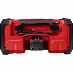 LOUD CLEAR SOUND. BUILT FOR WORK. Featuring a high-performance audio system and rugged design, the M18™ Jobsite Radio is built to amplify and survive the jobsite. Dual speakers and passive radiators combine to produce sharp highs, rich mids, and deep bass at all volumes. Durable metal speaker grills and shock absorbing end caps protect from drops and other harmful jobsite conditions while integrated handles allow for easy transport and storage. Listening options include a digital processor with best-in-class reception and signal clarity or a 3.5mm aux jack for wired playback. A weather-sealed auxiliary compartment protects devices and houses a 2.1A USB charging port. The M18™ Jobsite Radio is powered by all M18™ REDLITHIUM™ Batteries or A/C power.