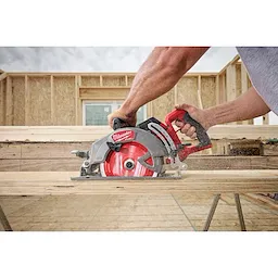 Designed for the professional carpenter, remodeler, and general contractor, the M18 FUEL™ 7-1/4" Rear Handle Circular Saw from MILWAUKEE® delivers class-leading performance. Utilizing the latest in cordless technology, this saw provides users with the power to complete more demanding applications and the cut speed to achieve greater productivity. The POWERSTATE™ Brushless Motor provides this worm drive style saw with 6,000 RPM, maintaining high speed under load, providing users the ability to complete their most demanding applications efficiently. Breakthrough advances in REDLINK PLUS™ Intelligence ensure maximum tool performance and protection from overload, overheating, and over-discharge. Paired with the M18 REDLITHIUM™ FORGE™ HD12.0 Battery, this saw provides up to 700 cuts per charge while maintaining full compatibility with all M18 REDLITHIUM™ batteries. This saw also comes with a 7-¼" 24T Thick Kerf Framing Circular Saw Blade, offering the straightest cuts and longer life. The lightweight and compact design, paired with premium ergonomics, makes this saw perfect for all-day use on the job site. For added productivity, this saw contains positive bevel detents and depth detents. A multi-sized rafter hook allows you to store the saw on different materials. Additionally, the saw has an electric blade break, rotational dust port, LED work light, and all magnesium guards and shoe, keeping you productive and providing durability to handle the toughest job site conditions.