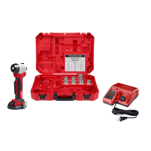 Our M18™ Cable Stripper Kit for Cu RHW / RHH / USE vastly improves the cable stripping experience. With no exposed blades, the cordless cable stripper provides safer stripping than with a knife. The cable stripper's compact, right-angle design allows you to maneuver it more easily in tight spaces with less strain on the wrist. The bushing design and adjustable depth gauge deliver cleaner, more accurate and consistent strips across all sizes. The cable jacket stripping tool is not only compatible with all MILWAUKEE® bushings but is also compatible with competitive quick-change bushings. In addition to the battery-powered stripper, this kit contains 8 bushings for copper RHW, RHH, and USE cables, one M18™ Compact REDLITHIUM™ battery, an M18™ & M12™ Multi-Voltage Charger, and a carrying case.