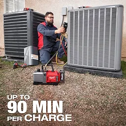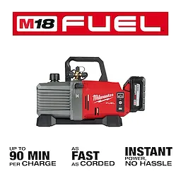 Our M18 FUEL™ 5 CFM Vacuum Pump eliminates the hassle of cords and provides instant power for fast evacuations. Powered by M18™ REDLITHIUM™, this pump delivers the runtime to complete multiple jobs on one charge. With the innovation of manifold mode, the M18 FUEL™ 5 CFM Vacuum Pump allows you to maximize your speed and runtime in manifold setups, enabling up to 90 minutes of runtime per charge. Our vacuum pump features a POWERSTATE™ Brushless Motor to enable corded speed during system pulldowns. The pump’s 1/2", 3/8", and ¼" port offerings deliver fast evacuations, especially when used with large hoses. The M18 FUEL™ 5 CFM Vacuum Pump is equipped with REDLINK PLUS™ Intelligence to ensure maximum performance and protection from overload.