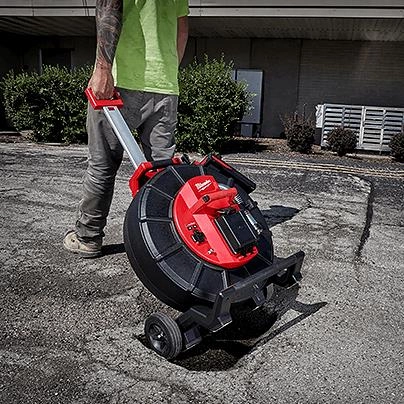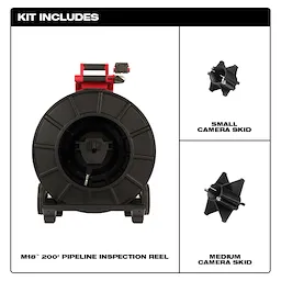Our 200’ Pipeline Inspection Reel designed for 3”-10” drain lines is powered by the M18™ 500 GB Control Hub and is part of the MILWAUKEE® M18™ Modular Pipeline Inspection System. Featuring the industry’s shortest 34 mm 1080p HD self-leveling camera head, and the ability to digitally zoom up to 4X and optimize light output inside of pipes, technicians can now see more in drain lines than ever before. The sewer line camera has a telescoping handle and wide wheelbase making transportation on and off the job easier than ever. The 200’ Pipeline Inspection Reel comes equipped with small and medium camera skids as well as a camera head sleeve to center and protect the camera while inside pipes.