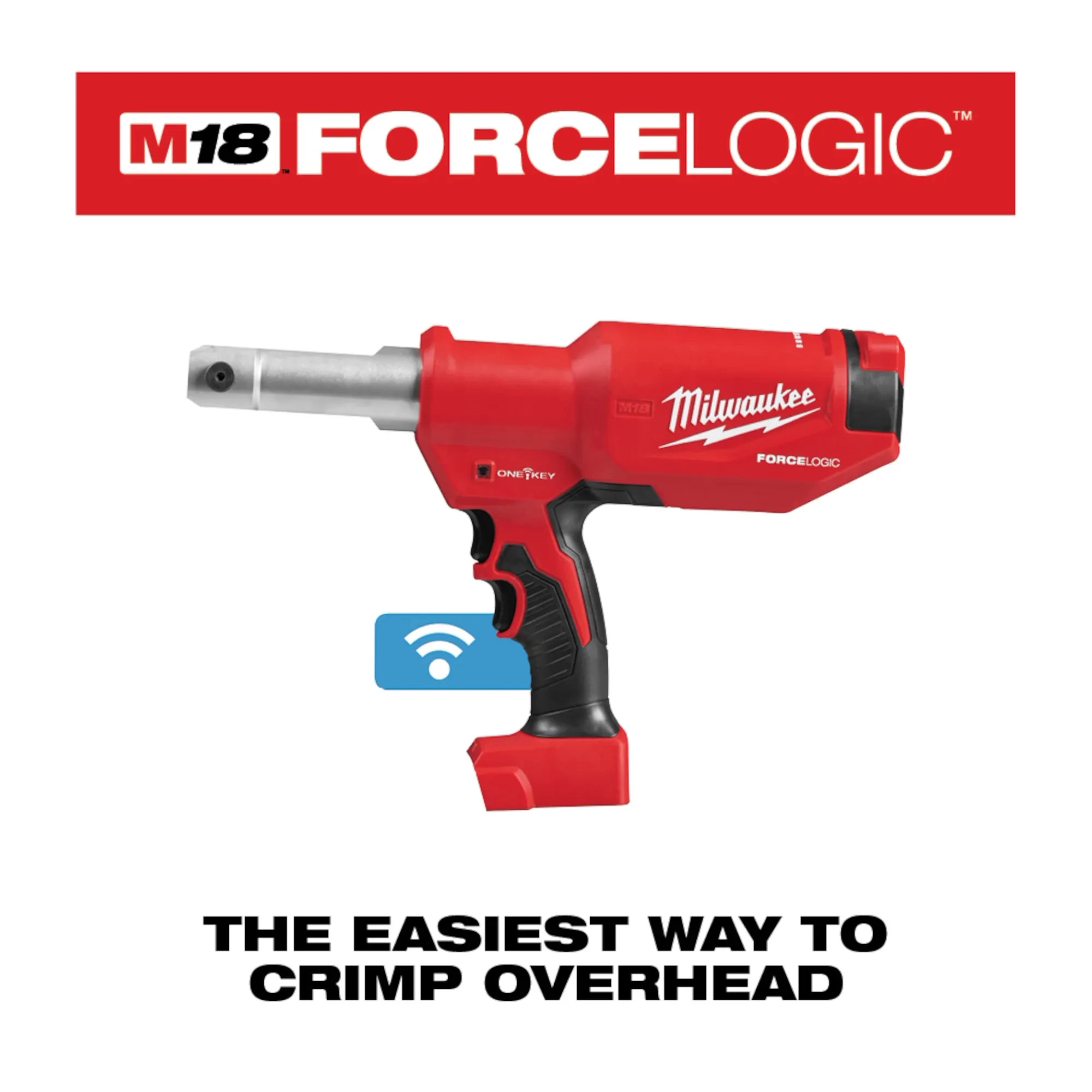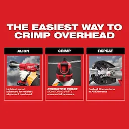 Our M18™ FORCE LOGIC™ 6T Pistol Utility Crimper is The Easiest Way To Crimp Overhead. As the lightest, most balanced 6-ton pistol crimper, it provides linemen the easiest alignment when making connections at shoulder height or above. Predictive Force Monitoring (PFM™) constantly measures force output, delivering the fastest crimp speed while providing accurate pressure and instant verification every time. A 340° rotating head allows for easy access into tight spaces. Compatible with eight crimping and cutting jaws, the crimper delivers the versatility to tackle a variety of applications. With the ability to crimp up to 4/0 line taps and cut up to 750MCM Cu, 1000MCM Al, 477 ACSR, ½” EHS Guy Wire, 3/8” Rebar, and 3/8” Ground Rod by simply changing jaws, the crimper becomes a lineman’s single crimping and cutting solution. With our ONE-KEY™ Technology, MILWAUKEE® Crimpers enable you to store real-time crimp data, generate professional reports, view historical tool performance data, and sync it all wirelessly to the cloud for easy access. The 6T pistol grip cordless crimper features a POWERSTATE™ Brushless Motor, REDLINK™ Electronics, and REDLITHIUM™ Batteries, providing you with unmatched reliability in the toughest conditions. In addition to the cordless 6T Pistol Utility Crimper, the kit includes an M18™ 6T Fixed O Crimping Jaw, two M18™ REDLITHIUM™ CP2.0 Batteries, an M18™ & M12™ Multi-Voltage Charger, and a contractor bag.