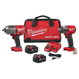 Our Automotive Impact Wrench 2-Piece Kit includes an M18 FUEL™ 1/2" High Torque w/ Friction Ring that eliminates the need to use a pneumatic tool for stubborn and rusted bolts by delivering 1400 ft-lbs of nut-busting torque and 1,000 ft-lbs of fastening torque. With 2X faster removal speed, you will be able to get the job done faster and be more productive throughout the day. By providing the industry’s most compact cordless High Torque Impact Wrench at 8.39” in length, this tool allows for more access in tight spaces. The included MILWAUKEE® M18 FUEL™ 3/8" Mid-Torque Impact Wrench w/ Friction Ring delivers the best power to weight ratio, most access in tight spaces, and faster removal speed. It provides 600 ft-lbs of nut-busting torque and only weighs 5.0 lbs, making it extremely versatile, and capable of performing various applications, such as removing large bolts or lug nuts. This cordless impact wrench is the most compact in its class, giving you access to stubborn fasteners in spaces where larger impact wrenches can’t fit without needing to disassemble components to reach bolts. Tri-LEDs surround the anvil to deliver brighter light with fewer shadows. This automotive impact wrench kit includes (1) M18 FUEL™ 3/8" Mid-Torque Impact Wrench w/ Friction Ring, (1) M18 FUEL™ 1/2" High Torque Impact Wrench w/ Friction Ring, (2) M18™ REDLITHIUM™ 5.0Ah Batteries, (1) M12™/M18™ Charger, and a Contractor Bag.