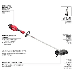 Our M18 FUEL™ Edger is designed to meet the performance, durability, and ergonomic needs of landscape maintenance professionals. The Edger’s POWERSTATE™ Brushless Motor™ delivers more power than 31cc gas to take on demanding applications like edge creation and maintains a higher blade speed to create clean edges faster. This fixed shaft edger is lighter weight and has less vibration reducing fatigue. The M18 FUEL™ Edger reaches full throttle in under 1 second increasing productivity and includes a site line on the guard, steel skid plate, and blade wear indicator to provide more control and increase productivity. Our REDLINK PLUS™ Intelligence enables full-circle communication between the tool and battery, providing you with unmatched levels of performance, protection, and productivity. This Edger is optimized for use with our M18 FUEL™ REDLITHIUM™ FORGE™ HD12.0 Battery to provide more power and run time. The M18 FUEL™ Edger is fully compatible with 275+ solutions on the M18™ System.