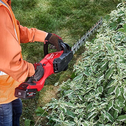 The M18 FUEL™ 30" Hedge Trimmer is compatible with all M18™ batteries. The hedge trimmer is optimized to be used and will see the best performance with M18™ REDLITHIUM™ HIGH OUTPUT™ and FORGE™ XC8.0 and HD12.0 batteries.