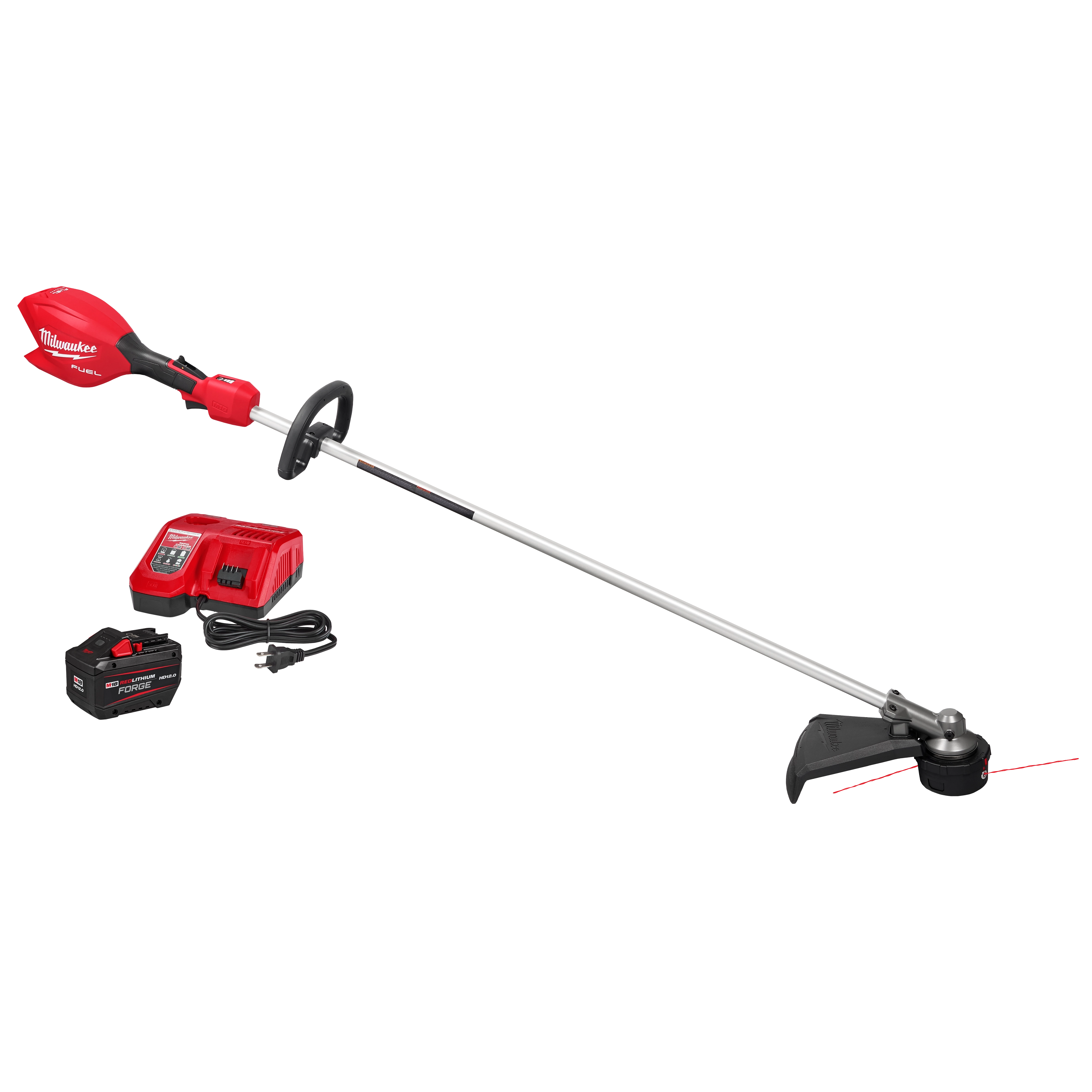 Our M18 FUEL™ 16" String Trimmer is designed for the landscape maintenance professional. Our POWERSTATE™ Brushless Motor™ delivers more power than 31cc gas, maintaining speed in demanding applications without bogging down, enabling you to complete routine maintenance and thick brush clearing jobs faster.  Our motor has an advanced air-cooling system to sustain demanding applications for longer, increasing user productivity. This fixed shaft string trimmer is also more balanced and lighter weight, reducing fatigue and increasing control. The motor is positioned in the rear of the trimmer to provide the best combination of power and maneuverability. The advanced electronics package allows the tool to reach full throttle in under 1 second, provides 3 speeds, and a variable speed trigger, maximizing productivity. Our REDLINK PLUS™ Intelligence enables full-circle communication between the tool and battery, providing you with unmatched levels of performance, protection, and productivity. The Easy Load Trimmer Head provides the ability to load up to 25' of trimmer line in under 30 seconds. This string trimmer is optimized for use with an M18™ REDLITHIUM™ FORGE™ XC12.0 (Battery Included) to maximize performance and run time. Our M18 FUEL™ 16" String Trimmer is part of the M18™ system which is fully compatible with over 275+ tools.