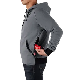 Powered by our M12™ REDLITHIUM™ Battery Technology, the MILWAUKEE® M12™ Heated Hoodie provides HEAT BUILT FOR COMPLETE COMFORT. Using a one-touch LED controller, the advanced carbon fiber heating elements create and distribute heat to the chest and back. Our Quick-Heat function allows our users to select from three heat settings and feel heat 3X faster than market competitors. A hidden battery pass-thru pocket construction allows for front or back battery placement, increasing comfort and flexibility depending on the situation. Combining a durable cotton/polyester fleece and comfortable jersey lining, this hoodie provides a versatile three-season solution to keep heat in and not add bulk.