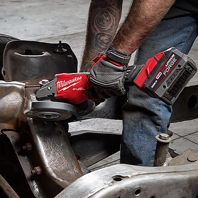Our M18 FUEL™ 4-1/2" / 6" Braking Grinder Paddle Switch battery kit is the next advancement in power and performance, generating 13A corded power, fastest cutting, and delivering up to 135 cuts per charge. The M18 FUEL™ 4-1/2" / 6" Braking Grinder Paddle Switch battery kit generates 13A corded power allowing you to complete the toughest grinding and cutting applications, all on the M18™ Cordless System. The POWERSTATE™ Brushless Motor delivers maximum sustained power and 9,000 RPM to remove material faster and increase productivity. REDLINK PLUS™ Intelligence ensures unmatched levels of performance, protection, and compatibility. The RAPIDSTOP™ Brake provides stop times under 2 seconds with an abrasive disc. The M18 FUEL™ 4-1/2" / 6" Braking Grinder Paddle Switch battery kit includes an electronic clutch for kickback protection, as well as overload protection to maximize motor life. The M18™ REDLITHIUM™ FORGE™ XC8.0 Battery Pack for HIGH OUTPUT™ HD12.0 power in a smaller size, and longest life vs. REDLITHIUM™ batteries. The MILWAUKEE® M18 FUEL™ 4-1/2" / 6" Braking Grinder Paddle Switch battery kit includes two M18™ REDLITHIUM™ FORGE™ XC8.0 Battery Packs and one M18™ & M12™ Rapid Charger.