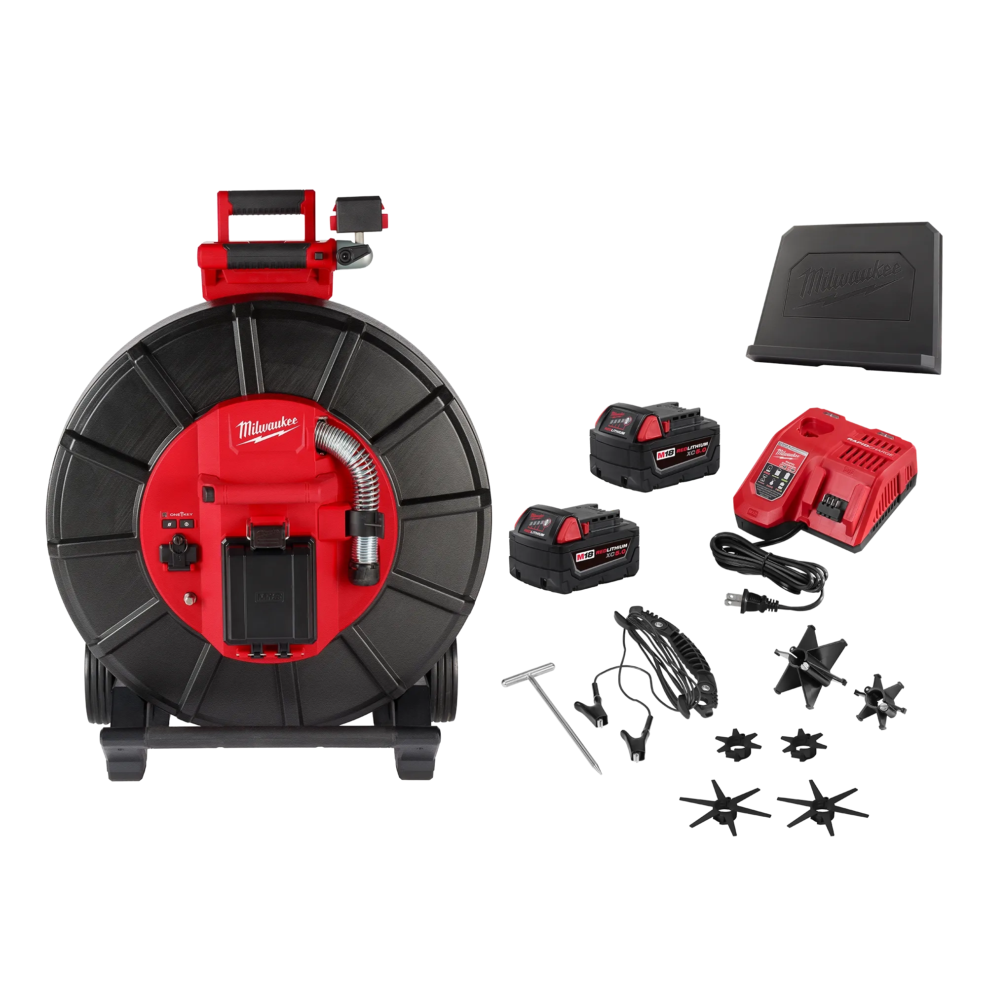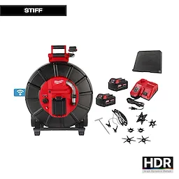 Our M18™ 325’ Stiff Pipeline Inspection System delivers the clearest image, and easiest inspections for 3"-10” sewer lines, perfect for long runs with few turns. Featuring the industry’s shortest 34 mm HDR self-leveling camera head, and the ability to digitally zoom up to 4X and pan, technicians can now see more in drain lines than ever before. Our HDR self-leveling camera heads allow you to see both up close and further down the line with superior clarity, reducing washed-out areas and highlighting detail in dark conditions. Our pitch sensing feature reads and displays pitch on screen for easier diagnosis and more effective reporting. This system features a telescoping handle and wide wheelbase making transportation on and off the jobsite easier than ever. Powered by M18™ REDLITHIUM™ 5.0 batteries, the M18™ 500GB Control Hub powers the reels, stores recordings, and easily swaps between reel sizes delivering unmatched system versatility. Capture, create, and share custom photos and videos from one of our compatible Pipeline Inspection viewing devices or directly from a tablet or mobile device for faster sharing of findings. This sewer line camera is also equipped with ONE-KEY™ Technology, providing you with the ability to track the tool's location, manage it in inventory, and lock the tool out to help protect your investment.