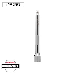 Our Wobble Extensions offer the most control and better access even in the tightest applications. The extensions feature the largest knurling surface on both the shaft and female drive end allowing precision control when hand-tightening or working with oily materials. The male square end features a wobble design, providing up to 11 degrees (1/4" drive); 15 degrees (3/8" drive); and 8 degrees (1/2" drive) of movement for better access at different angles and in tight spaces. The male end also provides added versatility by doubling as a standard or a wobble extension. The chrome plating on the extensions offers corrosion and rust protection. All Milwaukee® Mechanics Hand Tools are backed by a lifetime guarantee.
