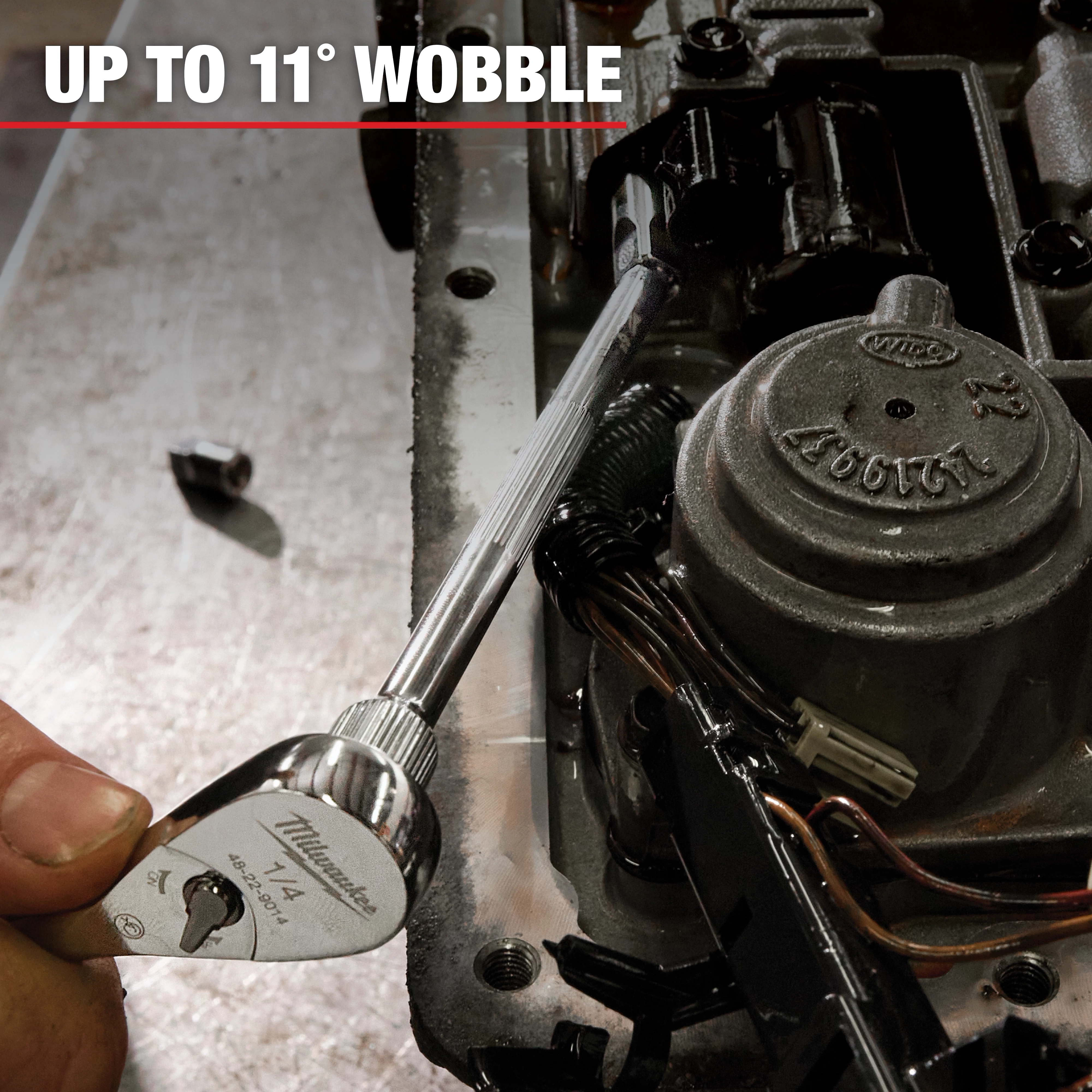 Up to 11 degrees (1/4" drive); 15 degrees (3/8" drive); and 8 degrees (1/2" drive) of movement for better access