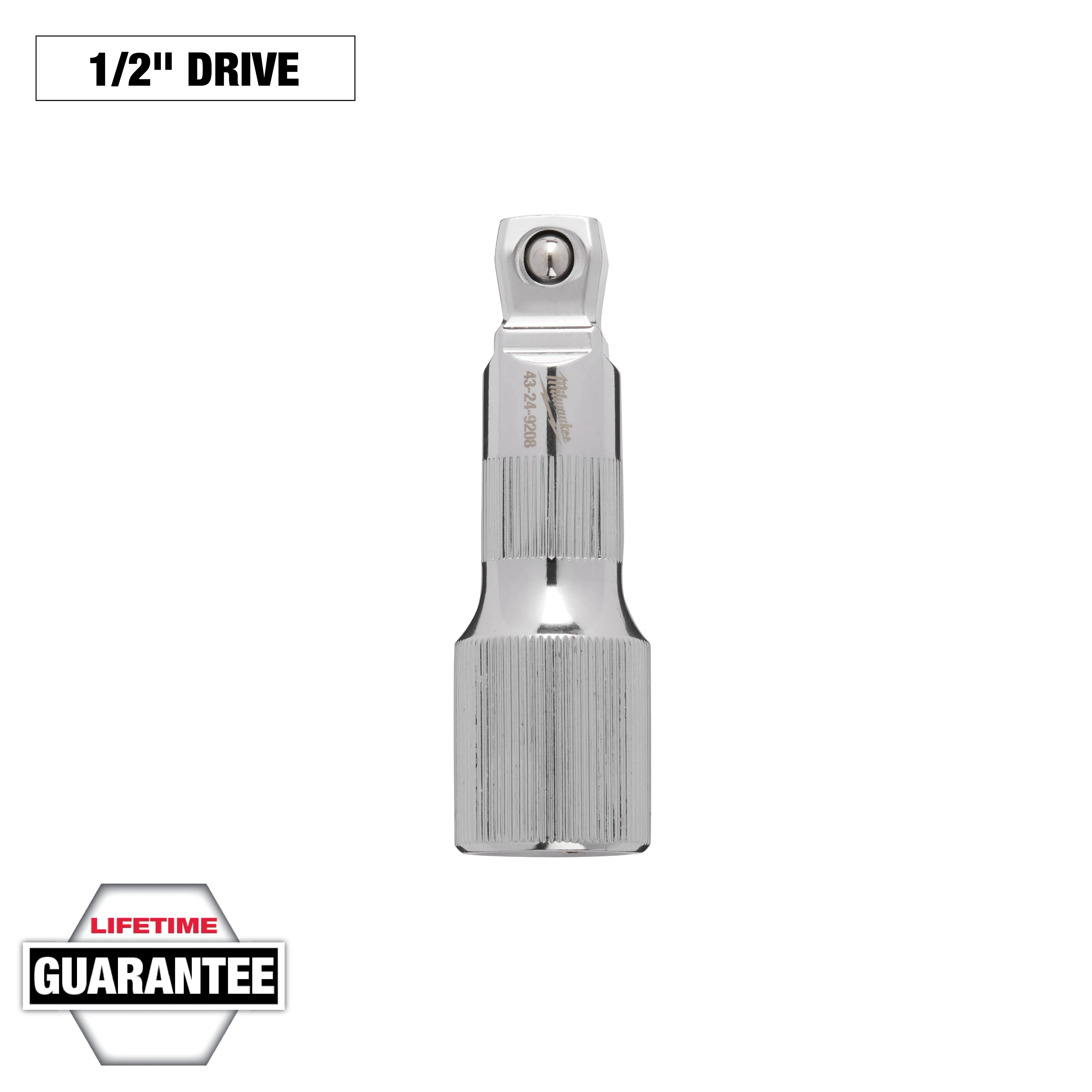 Our Wobble Extensions offer the most control and better access even in the tightest applications. The extensions feature the largest knurling surface on both the shaft and female drive end allowing precision control when hand-tightening or working with oily materials. The male square end features a wobble design, providing up to 11 degrees (1/4" drive); 15 degrees (3/8" drive); and 8 degrees (1/2" drive) of movement for better access at different angles and in tight spaces. The male end also provides added versatility by doubling as a standard or a wobble extension. The chrome plating on the extensions offers corrosion and rust protection. All Milwaukee® Mechanics Hand Tools are backed by a lifetime guarantee.