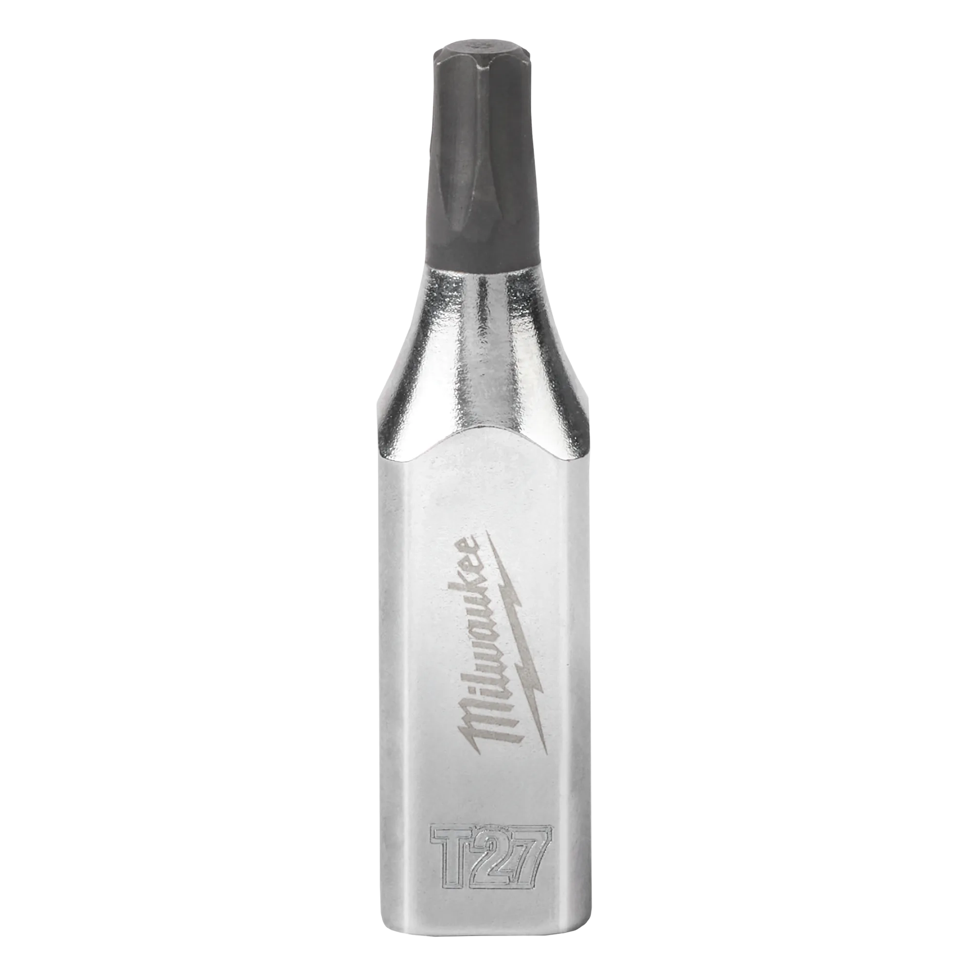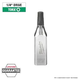 Our TORX® Bit Sockets with FOUR FLAT™ sides are designed from the ground up to be part of the most versatile socket family. Milwaukee® bit sockets feature an innovative design with four parallel flat sides, which deter rolling and are wrench-compatible. This also creates a slim profile to provide the best access in tight spaces. The one-piece socket design offers improved durability compared to two-piece designs by eliminating the risk of the bit separating from the socket base. Laser engraved size markings provide easy identification and chrome plating offers rust and corrosion protection. All Milwaukee® bit sockets are backed by a Lifetime Guarantee.