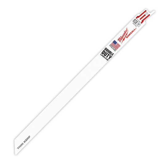 Thin Kerf metal-cutting blades with the Double Duty Upgrade™ feature a tooth form that is optimized for the longest life and increased speed. Tough Neck™ is engineered to protect against tang breakage and delivers the strongest SAWZALL® blade tang on the market. Maintaining a short profile and thin body, these blades are ideal for making fast, flexible cuts.
