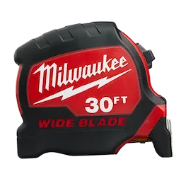 Our 30ft Wide Blade Tape Measure has the longest reach and straightest standout in the industry. The 17’ of reach* allows you to take long measurements on your own and reach further on the jobsite. The blade design delivers the straightest standout*, reducing the arc in the blade for efficient and accurate measuring. The tape measures are wear and impact-resistant with nylon bond blade protection and an additional anti-tear coating on the first 6” of the blade, reducing tape tear. Built to withstand the jobsite, the measuring tapes are constructed with a 5-point reinforced frame for impact resistance.