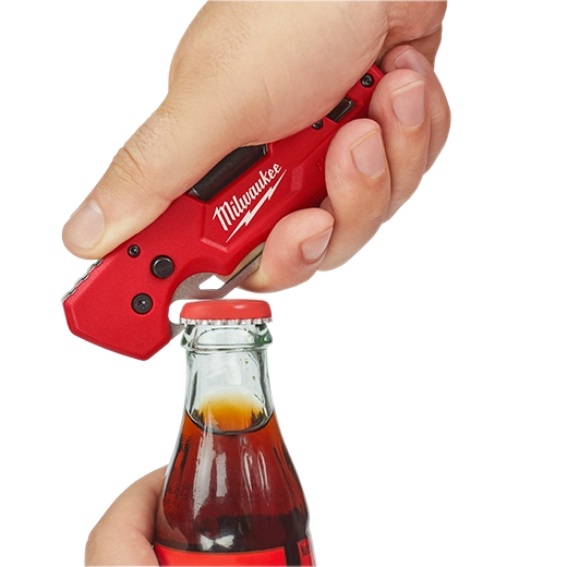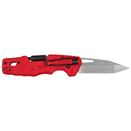 Our FASTBACK™ 5-in-1 Folding Knife features a press and flip mechanism providing you easy, one-handed opening. The folding knife has a stainless steel blade that stays sharp. The pocket knife also features a liner lock that secures the blade while also allowing you to easily close it when done. The 5-in-1 pocket knife has a folding tanto knife that is partially serrated for versatility, allowing you to both pierce and tear through material. The folding pocket knife also includes a fold-out 1/4" bit holder along with a reversible Phillips #2 and slotted 1/4" bit. It also has a built-in bottle opener providing you with added functionality. The pocket knife has a durable belt clip that reduces pocket tearing and includes a tether-ready lanyard hole.