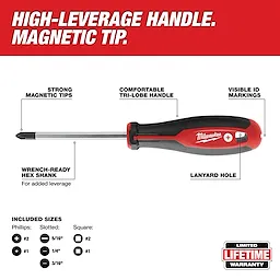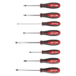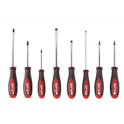 Phillips #1 x 3", Phillips #2 x 1 1/2" Phillips #2 x 4", Phillips #2 x 6", Slotted 1/4" x 1 1/2", Slotted 1/4" x 4", Slotted 3/16" x 6", Slotted 5/16" x 6", Square #1, Square #2
