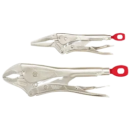 Our 2-Piece TORQUE LOCK™ Locking Pliers Set provides you with faster tool setup and more locking force. The locking pliers' unique thumb screw provides you with a more convenient geometry for hand force while providing clearance to generate more torque with the screwdriver through-hole design. The pliers' hardened jaws give you increased gripping power and they are made of forged alloy steel for maximum durability, perfect for the toughest of job sites. The pliers feature efficient and easy one-handed control release with ergonomic handles with an anti-pinch design. We stand behind our product and offer a MILWAUKEE® Limited Lifetime Warranty with all our locking tools. The two-piece set includes one 10" TORQUE LOCK™ Curved Jaw Locking Pliers and one 6" TORQUE LOCK™Long Nose Locking Pliers.