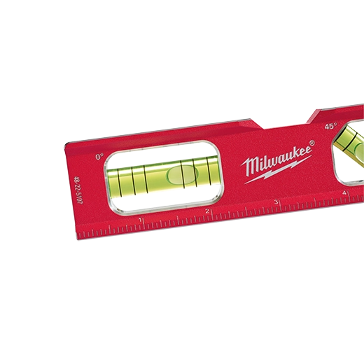 The Milwaukee Billet Torpedo level features AMPLIFIED RARE EARTH MAGNETS for over 2X the holding power of leading competitors. The MAXIMIZED VIEWING AREA ensures that the user can make a fast and accurate readings of 1/8" and 1/4" per foot in any position. The optimized top and back side pipe grooves make this the optimal tool for working with both small and large diameter pipes. The 48-22-5107 Milwaukee billet level also offers a weld clearance and laser etched ruled edge.