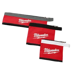 Our Multi-Size Zipper Pouches feature a breathable and durable No. 10 canvas construction and a rugged metal zipper make it Up to 2X More Durable for daily job site use. The 3 piece set includes 6", 8" and 14" zipper tool pouches. We designed the canvas tool bags for our electricians, carpenters, plumbers, and other core trades. They are ideal for storing electrical tape, bits, washers, screws, hand tools, and accessories. The weather-resistant standup base allows easy access to the pouch's interior while protecting their contents from water, dirt, and debris. We added a hanging loop to allow the pouches to be clipped or strung together or to other bags. Color ID bands on the top of the pouch help you identify the correct bag easily. This ensures you will have the tools and accessories you want whenever you need them.